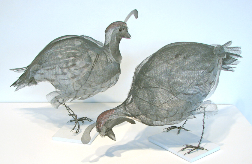 These are two of three quail sculptures that form a group. I've never seen a quail stand alone. I had to make a grouping.