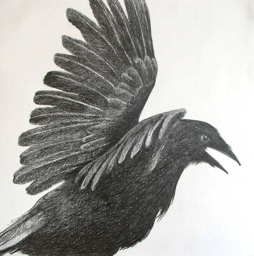 Crows always interest me. They are a noisy part of every morning walk. Most striking is their black shape. By cropping these drawings, the shape is emphasized.