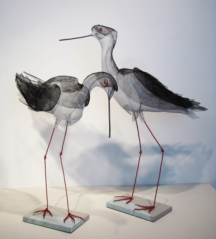 metal screen, wire on painted bases large bird: 25" x 26" x 8" sold