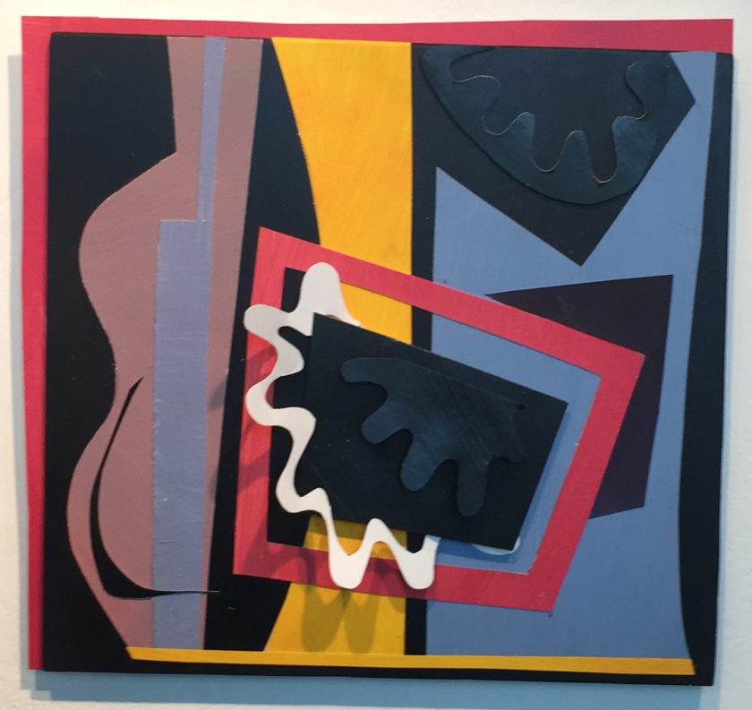 painted paper, cut and pasted on panel 8 1/2" x 9" x 1 1/2"