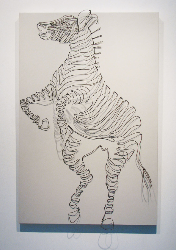 This took longer to execute than I had imagined. Much time was spent getting rid of any unwanted bends and wiiggles in the wire. It is important to me that the lines flow smoothly. "Zebra" will be in a summer show at Blue Spiral 1 in Asheville.