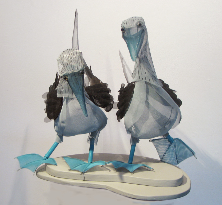 Courting Boobies lift one foot and then the other, as if showing off their feet will seal the deal. It took me a month to figure out how to cut and attach the screen shapes for these birds.